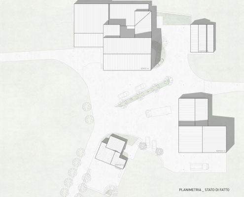 Le stringenti prescrizioni tipologiche ed architettoniche imposte dal locale piano regolatore non lasciano gradi di libertà nell’interpretazione delle architetture dei luoghi, la ricerca di progetto si concentra dunque sull’articolazione degli aspetti volumetrici dei nuovi edifici e sulla capacità di questi ultimi di rafforzare lo spazio aperto di aggregazione, unitario ma aperto verso l’incantevole paesaggio circostante.