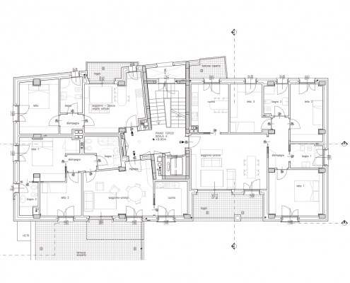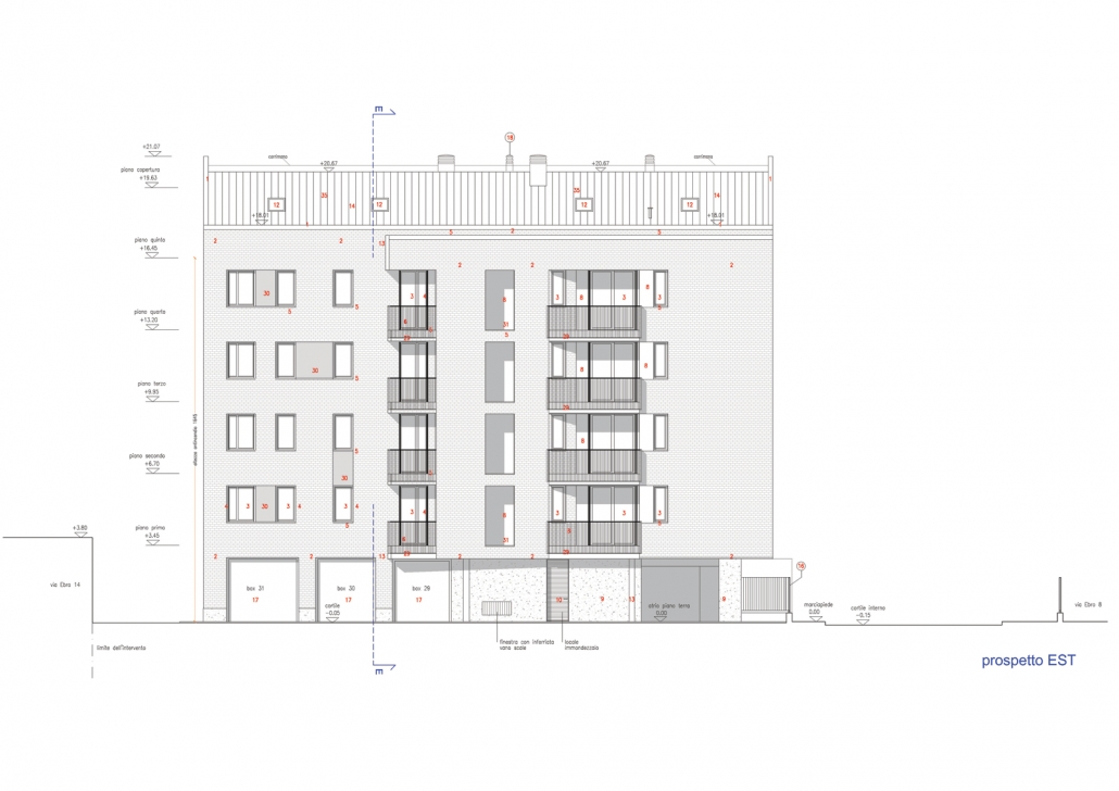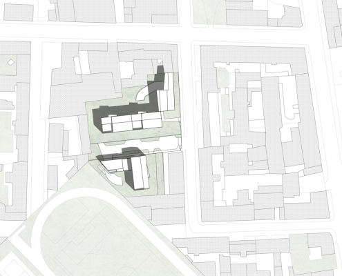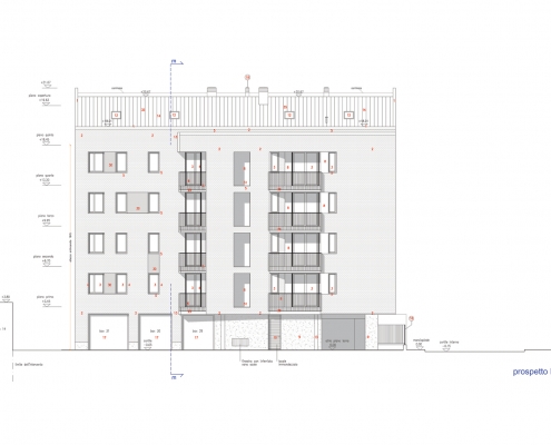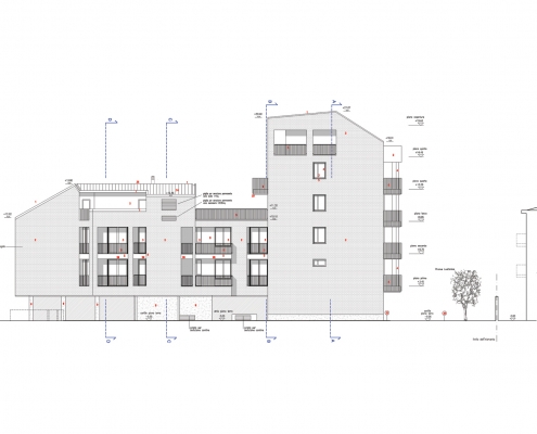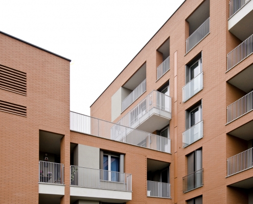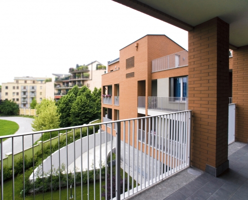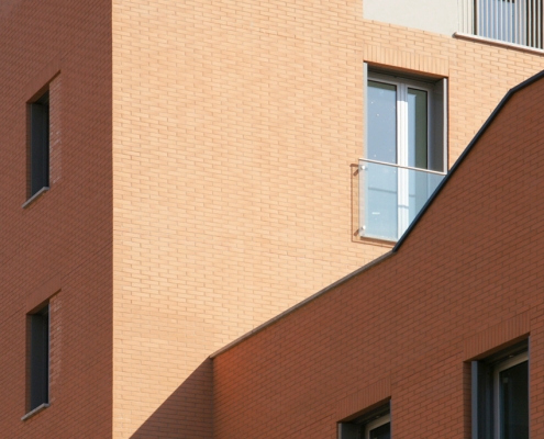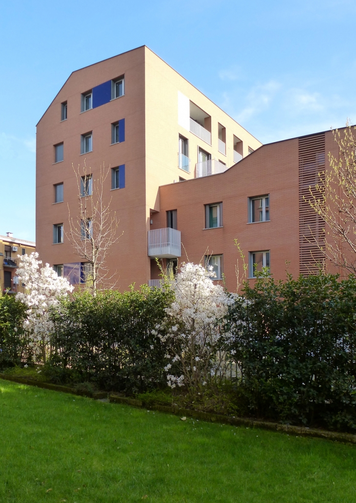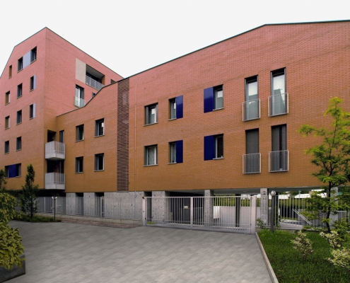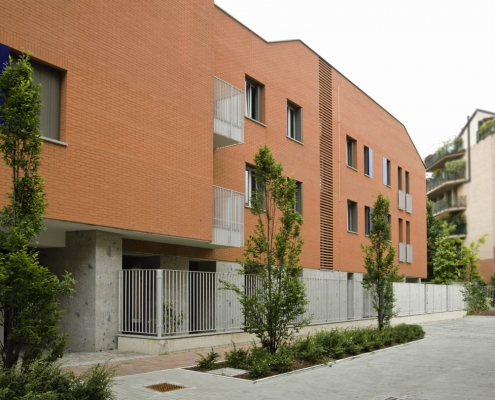 Lungo il lato nord del passaggio privato, al civico n.8 si trova l’altro complesso residenziale progettato dallo studio. L’edificio di progetto si pone in continuità con le scelte insediative e morfologiche adottate nell’intervento già realizzato.