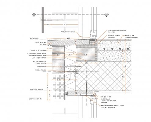 Le coperture di entrambi i corpi di fabbrica sono a falde inclinate in lastre di alluminio preverniciato, accolgono e celano alla vista i pannelli solari nel corpo alto, alcuni locali s.p.p. e un terrazzo privato aperto verso sud nel corpo basso: in questo modo il complesso conserva un profilo articolato ma non scomposto.